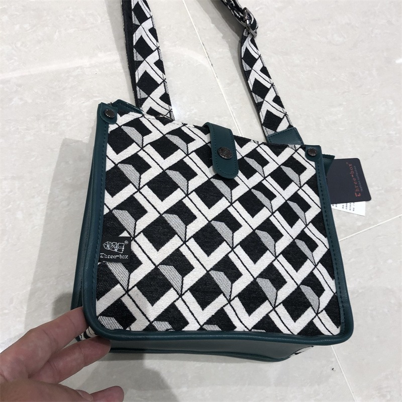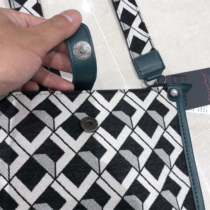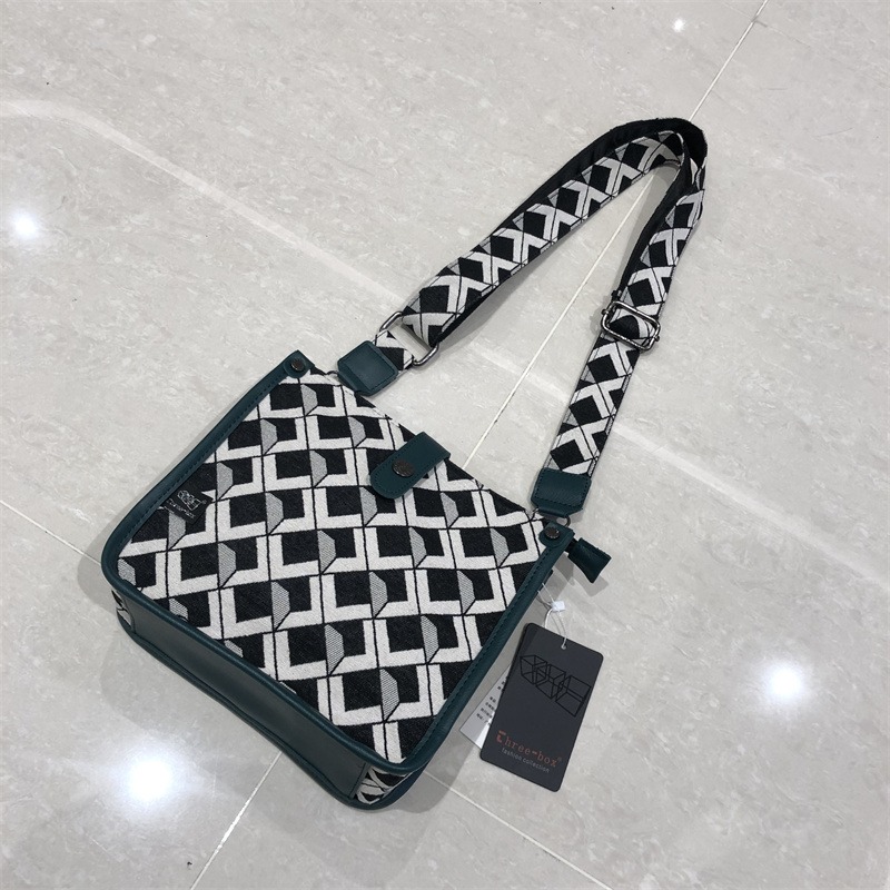おしゃれな幾何学模様が印象的なメンズショルダーバッグです。
