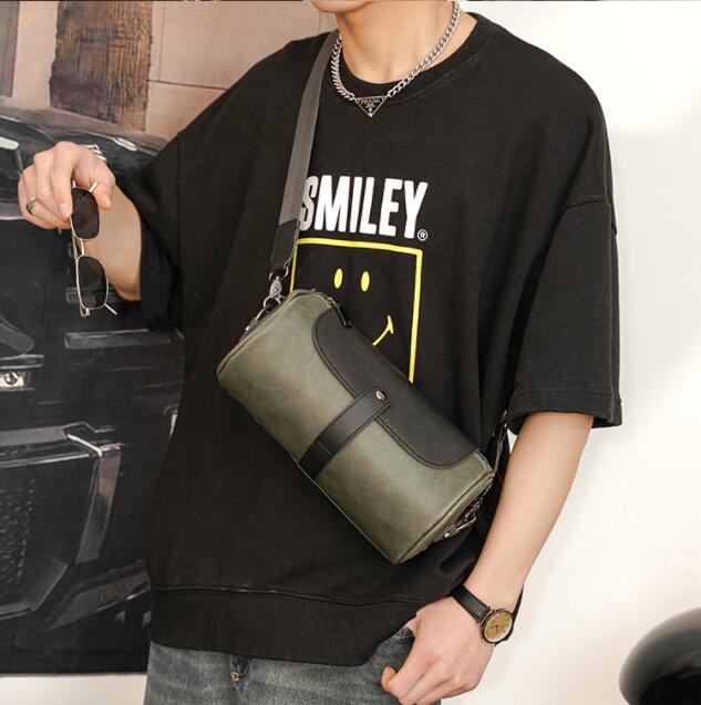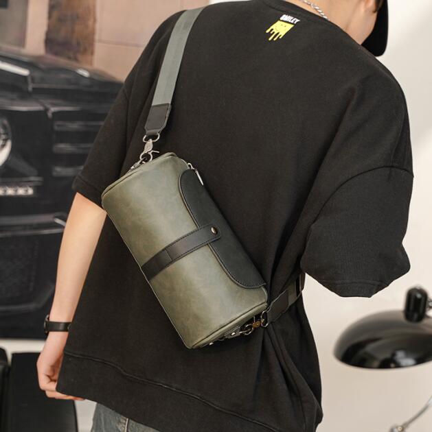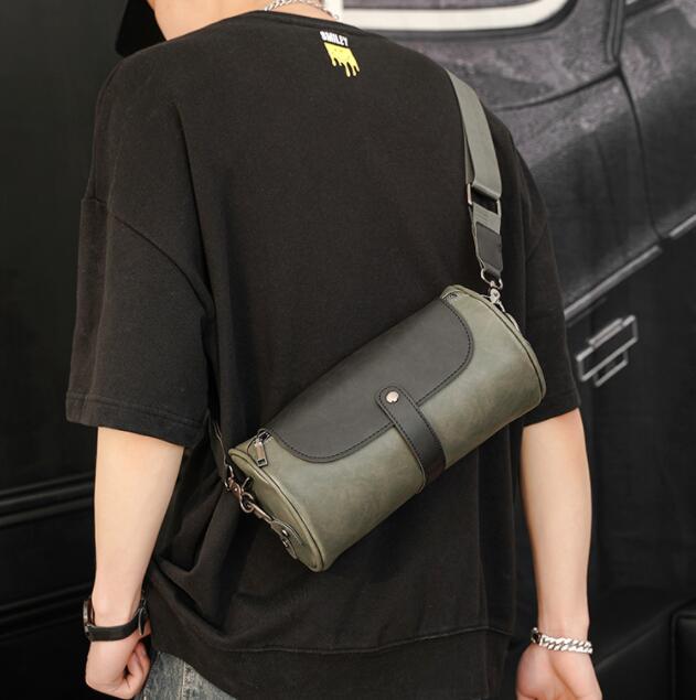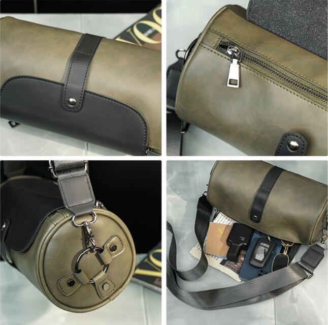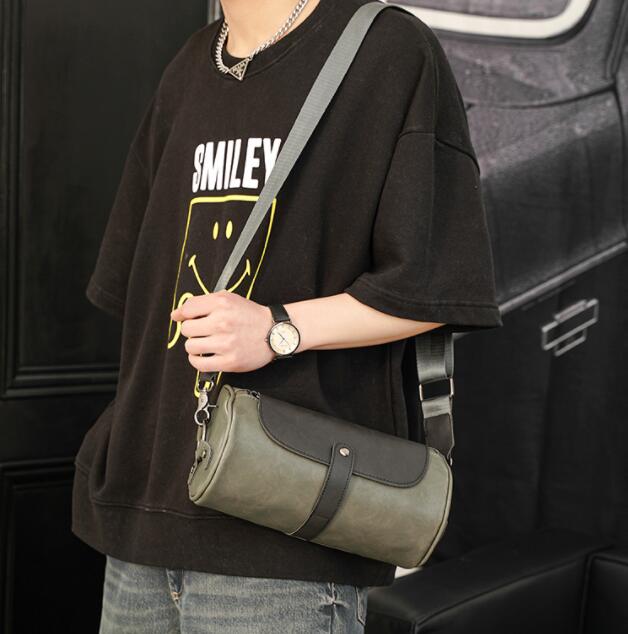 スタイリッシュな円筒型デザインのメンズショルダーバッグです。
