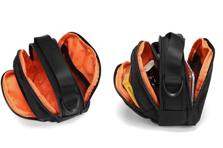 コンパクトなサイズ感ながら複数のポケットを備え、スマートフォンや財布などの小物をすっきり整理できます。