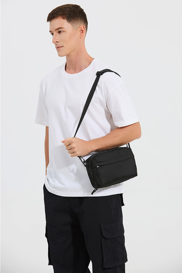 軽量なナイロン素材を使用し、長時間の持ち運びでも疲れにくい設計です。
